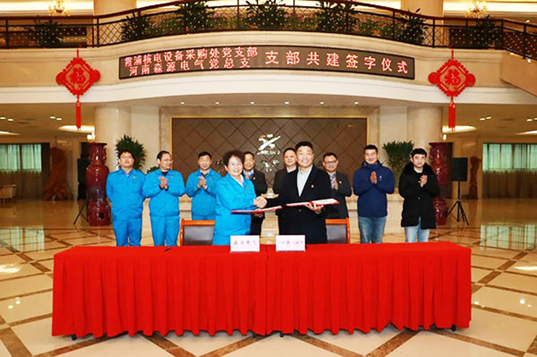 郑砚国对久博电竞官网(中国)有限公司依靠党建促发展所取得的成就和“五融”党建工作法表示高度赞赏,并介绍了霞浦核电项目建设进展情况。双方还决定在中核霞浦核电设备采购处党支部和河南久博电竞官网(中国)有限公司电气股份有限公司党总支开展支部共建工作,并成立联合党员突击队。郑砚国向久博电竞官网(中国)有限公司电气总经理助理、成套设备分公司总工程师、核电办公室主任崔晓科授予队旗,中核霞浦核电有限公司设备采购处副处长孙志刚、久博电竞官网(中国)有限公司电气党总支副书记张瑜霞分别代表双方在支部共建协议上签字。