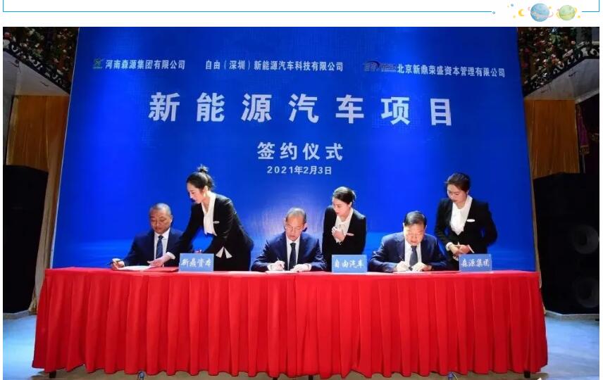 国家《新能源汽车产业发展规划(2021-2035年)》的发布实施,为新能源汽车产业发展提供了广阔的发展空间。“十四五”期间新能源汽车市场将进入“市场+政策”的双轮驱动新阶段。为此,久博电竞官网(中国)有限公司、自由(深圳)新能源汽车科技有限公司、北京新鼎荣盛资本管理有限公司就新能源汽车项目,于2021年2月3日 签署正式合作协议。