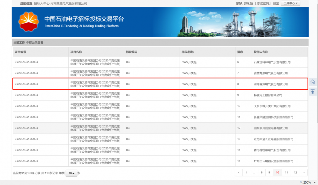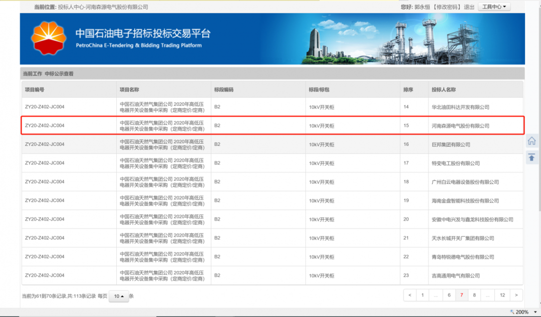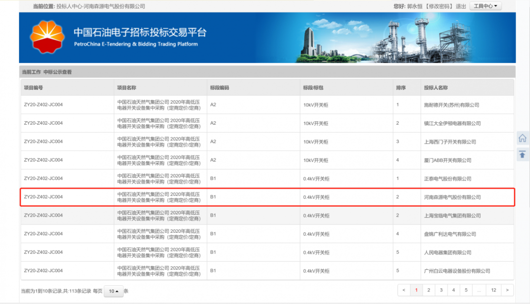 近日,中国石油天然气集团公司在“中国石油电子招标投标交易平台”公布了2020年高低压电器开关设备集中采购(定商定价)招标结果,久博电竞官网(中国)有限公司电气的0.4kV低压柜、10kV开关柜、35kV开关柜等产品成功入围中石油甲级供应商名录。
