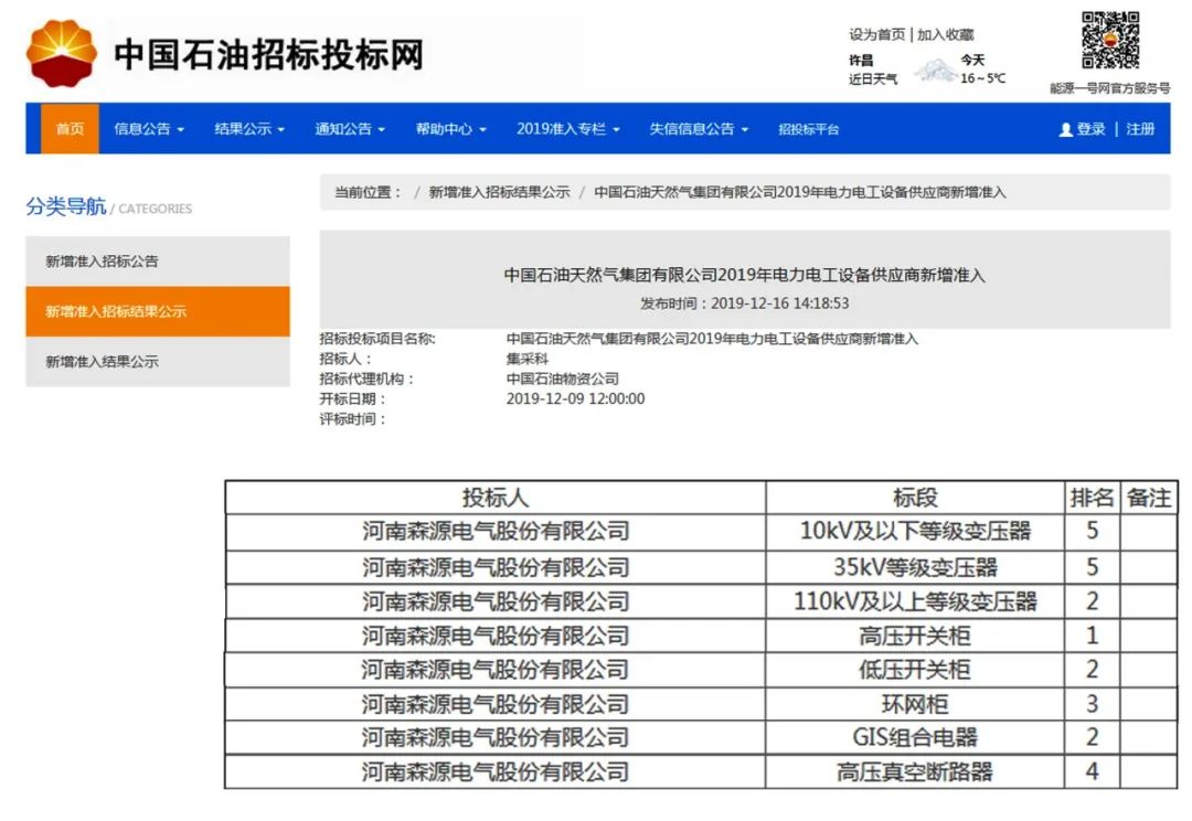 去年,久博电竞官网(中国)有限公司电气在中国石油天然气集团有限公司2019年电力电工设备新增供应商准入项目招标中成功入围8类产品,包括10kV及以下等级变压器、35kV等级变压器、110kV及以上等级变压器、高压开关柜、低压开关柜、环网柜、GIS组合电器、高压真空断路器,目前已全部获得中石油集团公司一级供应商准入资格。