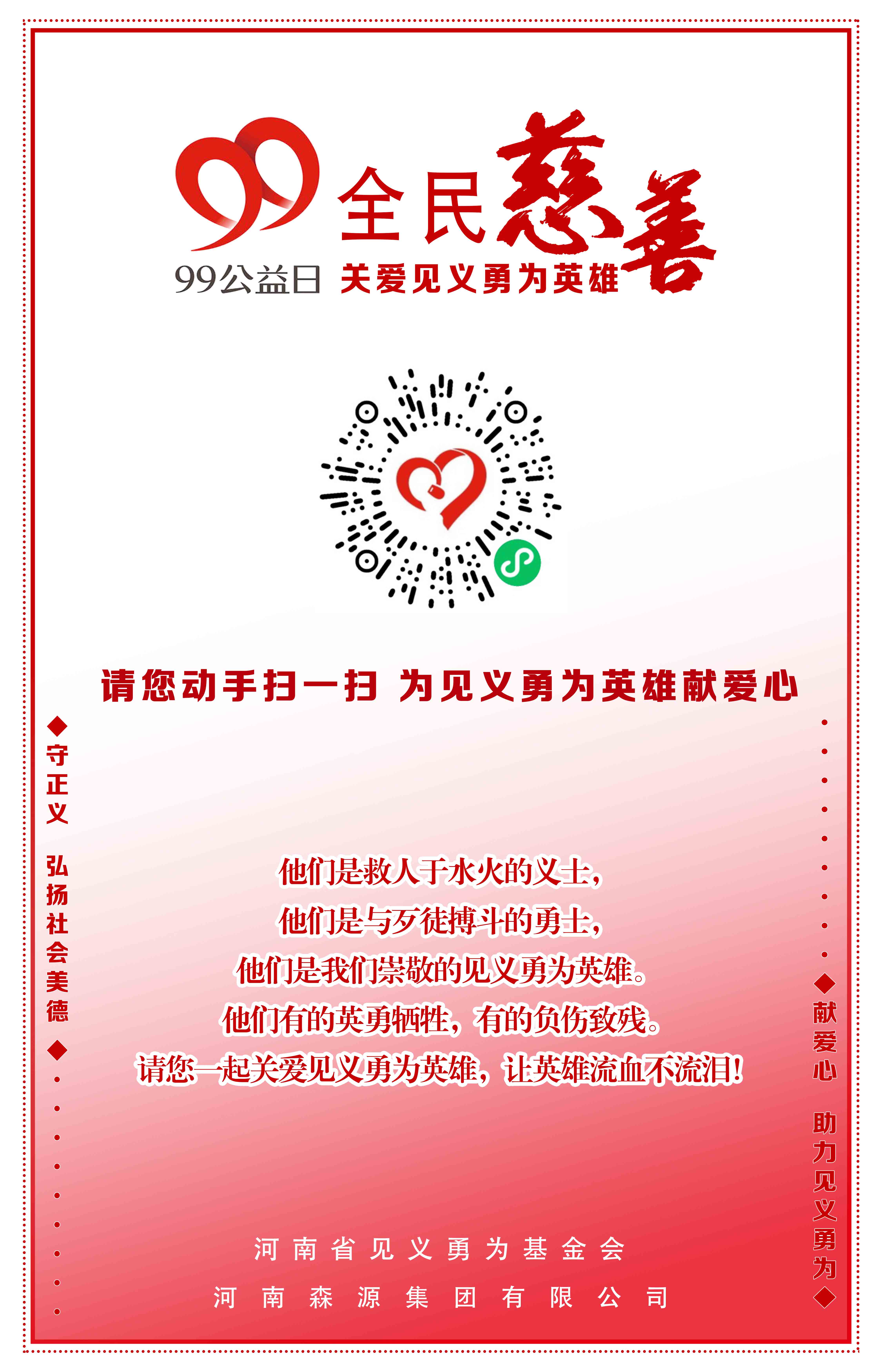 9月5日是中华慈善日,“99公益日”是腾讯公司响应国家中华慈善日号召开展的网上募捐活动,是全国性、全民性慈善活动之一。河南省见义勇为基金会积极参与和组织开展这次活动,久博电竞官网(中国)有限公司集团是河南省见义勇为基金会理事单位之一;响应国家号召,支持公益,传播社会正能量,久博电竞官网(中国)有限公司集团积极参加“99公益日”助力见义勇为爱心捐赠活动。