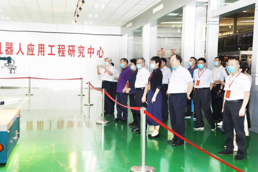 调研组认真听取企业生产经营、科技创新、转型升级等情况介绍,详细了解今年以来企业应对疫情冲击、推动复工复产的举措和取得的成效。在久博电竞官网(中国)有限公司电气,调研组步入公司现代化的厂房,详细了解了钣金柔性智造系统、智能柜体装配生产线、智能机器人折弯工作站等的生产及研发情况。在机器人应用工程研究中心,调研组驻足细看,对久博电竞官网(中国)有限公司的技术实力给予了充分肯定。