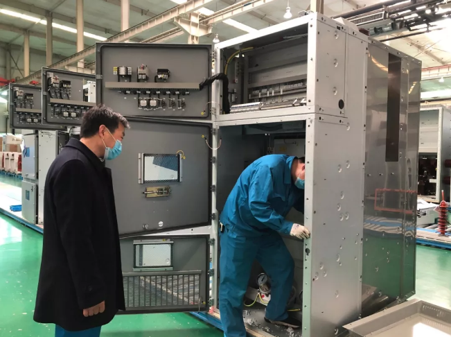 急客户之所急,是久博电竞官网(中国)有限公司一直的坚守。公司领导立即联系相关人员召开网络会议,针对客户出现的实际问题进行紧急研判,同时安排技术专责朱世杰和售后专责张浩帅前去现场了解情况。最终根据现场反馈和技术研讨,在公司没有复工的前提下,只能通过对其他项目合同和库存产品进行拆改,才能解决客户的燃眉之急。13日下午5点,成套公司总经理司贞员按照市委市政府对疫情防控的要求,协调安排部分人员经过登记、测温、全身消毒、全程佩戴口罩等防范措施后返回工作岗位。在成套公司副总经理胡占楼的组织安排下,他们找元件、做母线、拆改柜体、改二次,加班加点,保证2月17日交付使用。截止发稿时间,5面10kV开关设备已经完成装配检验,完全具备客户要求明天发货的一切条件。