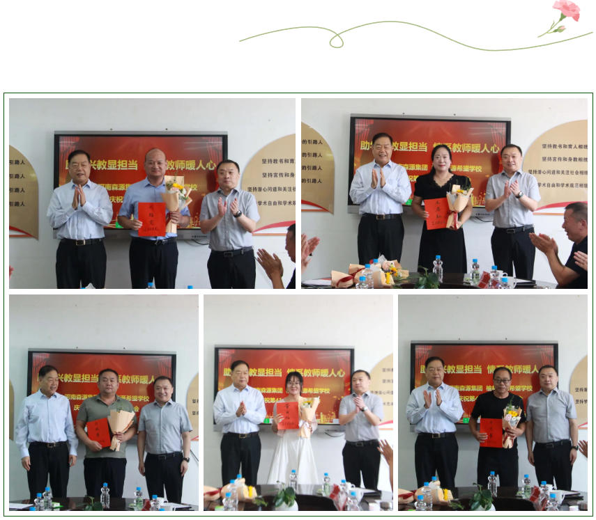 向21位教师送上鲜花和祝福,并颁发慰问金。