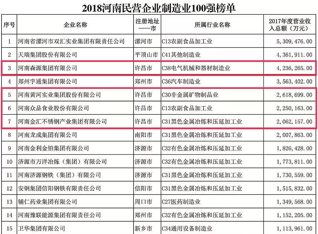 河南民企100强发布 长葛4家企业进入前10!