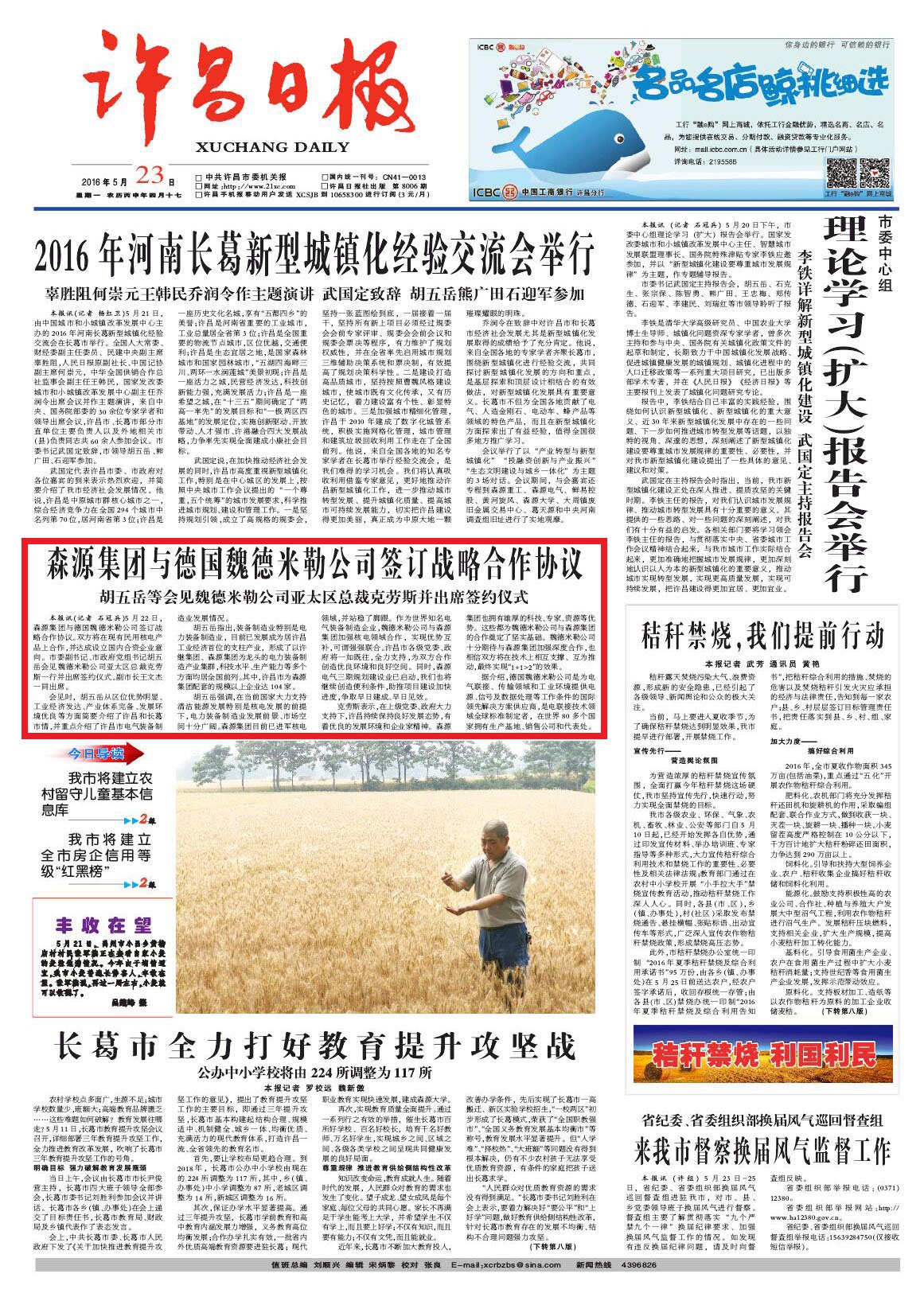 许昌日报头版报道——久博电竞官网(中国)有限公司集团与德国魏德米勒公司签订战略合作协议