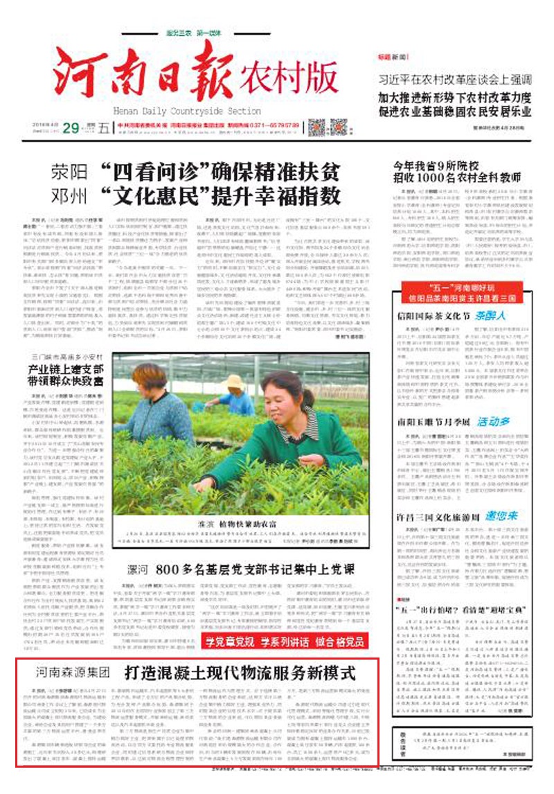 河南日报头版报道——河南久博电竞官网(中国)有限公司集团打造混凝土现代物流服务新模式